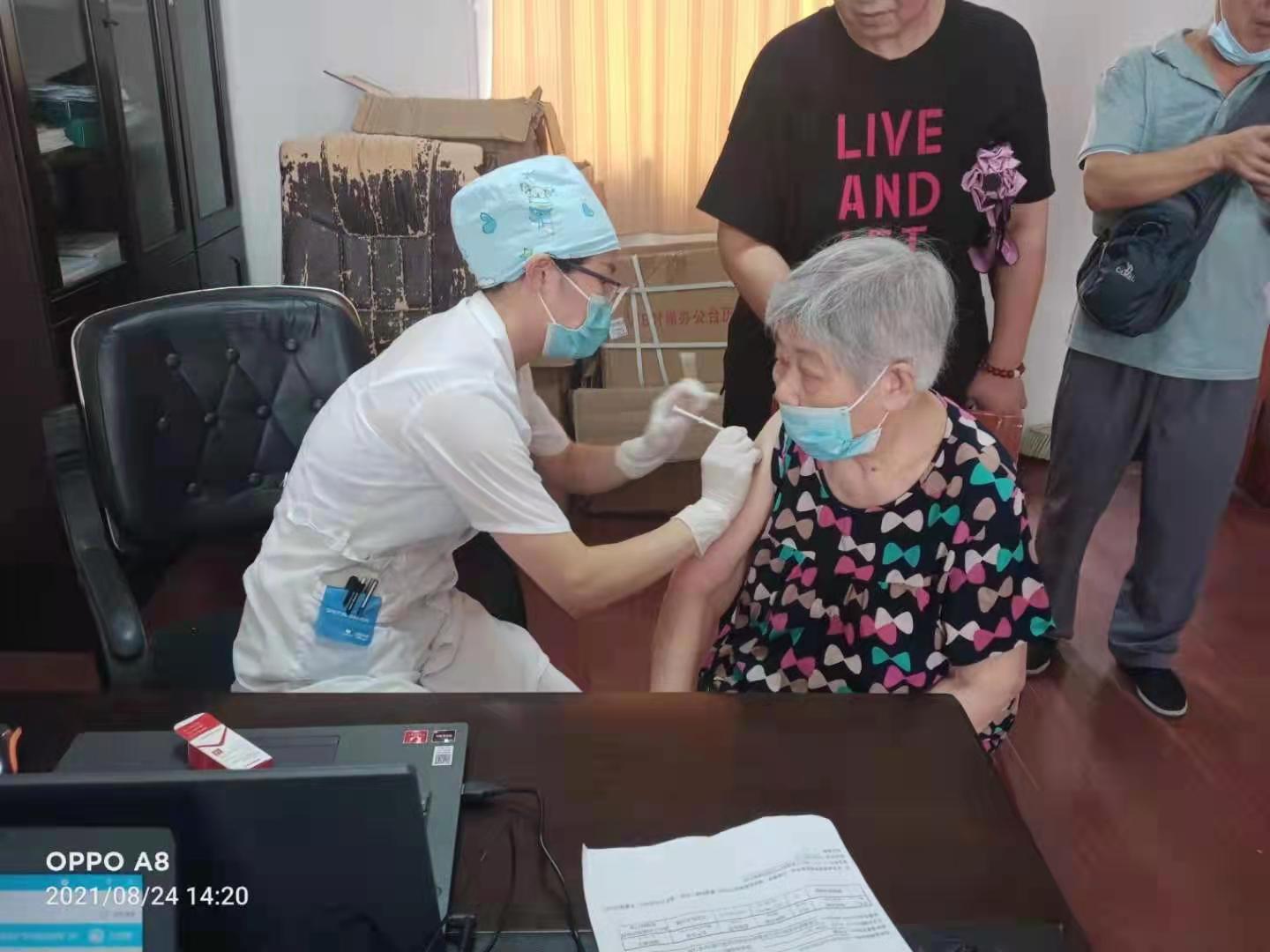 今年,在整个新冠疫苗接种工作中,社区党支部结合党史学习教育,开展“我为群众办实事”活动,坚持用心用情服务老年人,主动倾听老年人的困难需求,全力做到真心、热心、耐心、细心,确保老年人接种疫苗顺利进行。